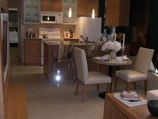 Features: Gourmet open kitchen w/ stone composite countertops, pendant lighting, limestone floor tiles, full STAINLESS STEEL appliance pkg w/ bottom mount freezer drawer, W/D, real wood laminate kitchen cabinets w/ glass door, built-in wine rack, Italian designer bathroom w/ marble counters, soaker tub and much more...1 PARKING. Downtown color scheme (Dark).